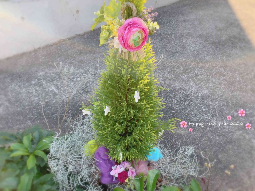 花壇に華やかなお正月飾りが😳