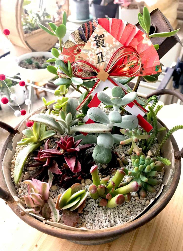 もう三ヶ日過ぎちゃったけど、まだまだ正月気分の寄せ植えです。