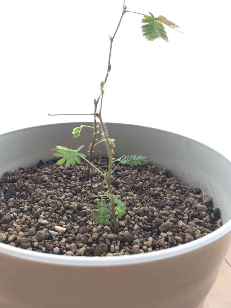 枯れたおじぎ草から出てきた葉が夏のサイズ感とは違い1cmくらいで可愛い♡