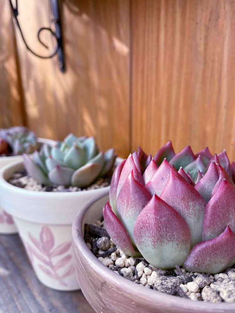 赤くなるのも先の方だけ赤いのやこの子みたいにみんな赤くなるのやピンクっぽいのや多肉ちゃんによって色々ちがうのね😊
