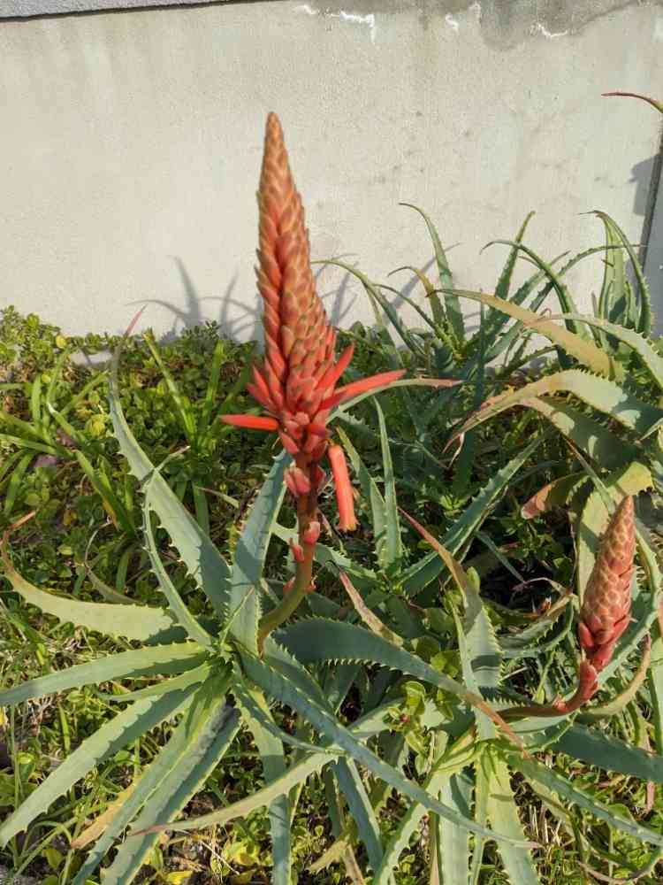 🚶ウオーキングの道すがら❗見かけた💗民家の軒先で🏵咲くアロエの🏵花