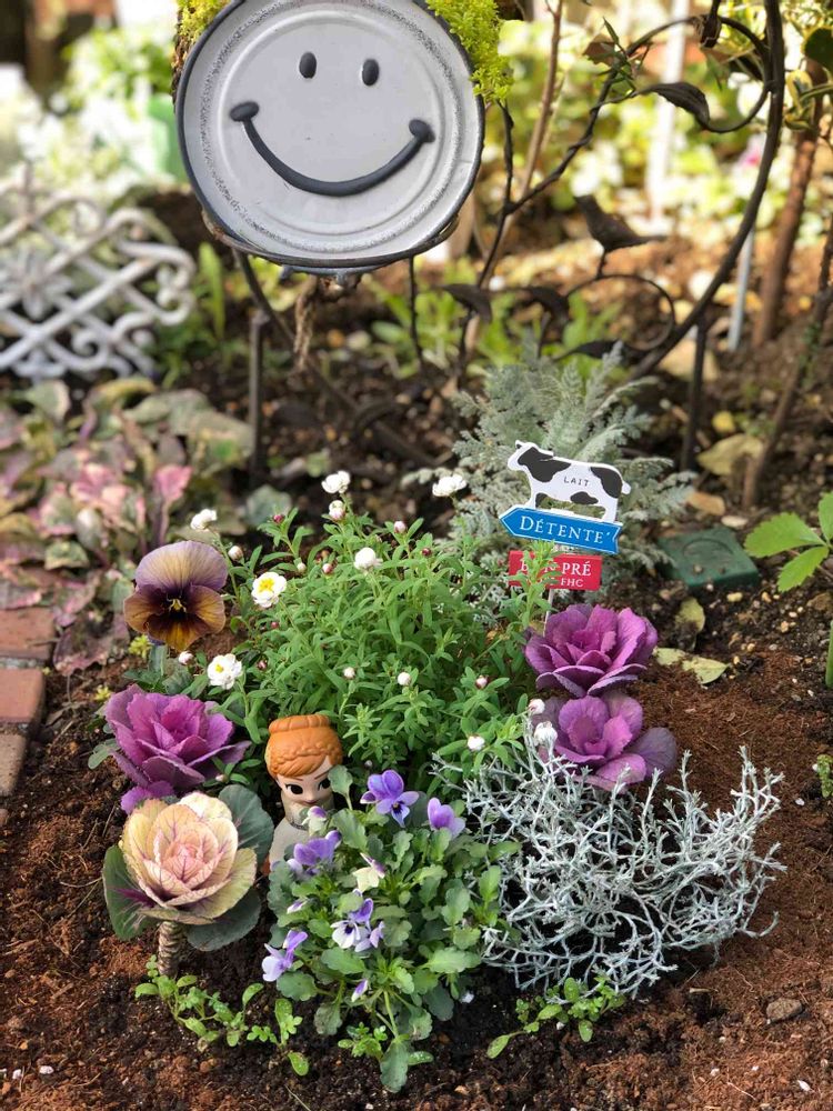 冬場の花壇はお花に苗帽子をかけて楽しんでいます。苗帽子もミニ温室のようで可愛いですよ💕