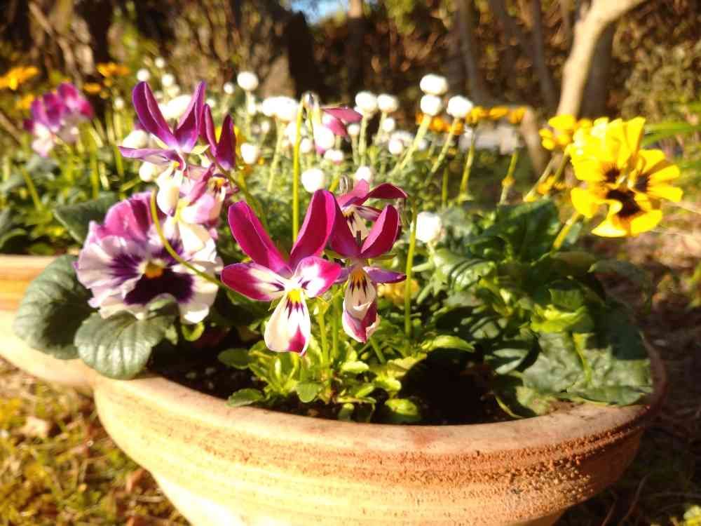 ビオラとパンジー、花かんざしの寄せ植え🌺