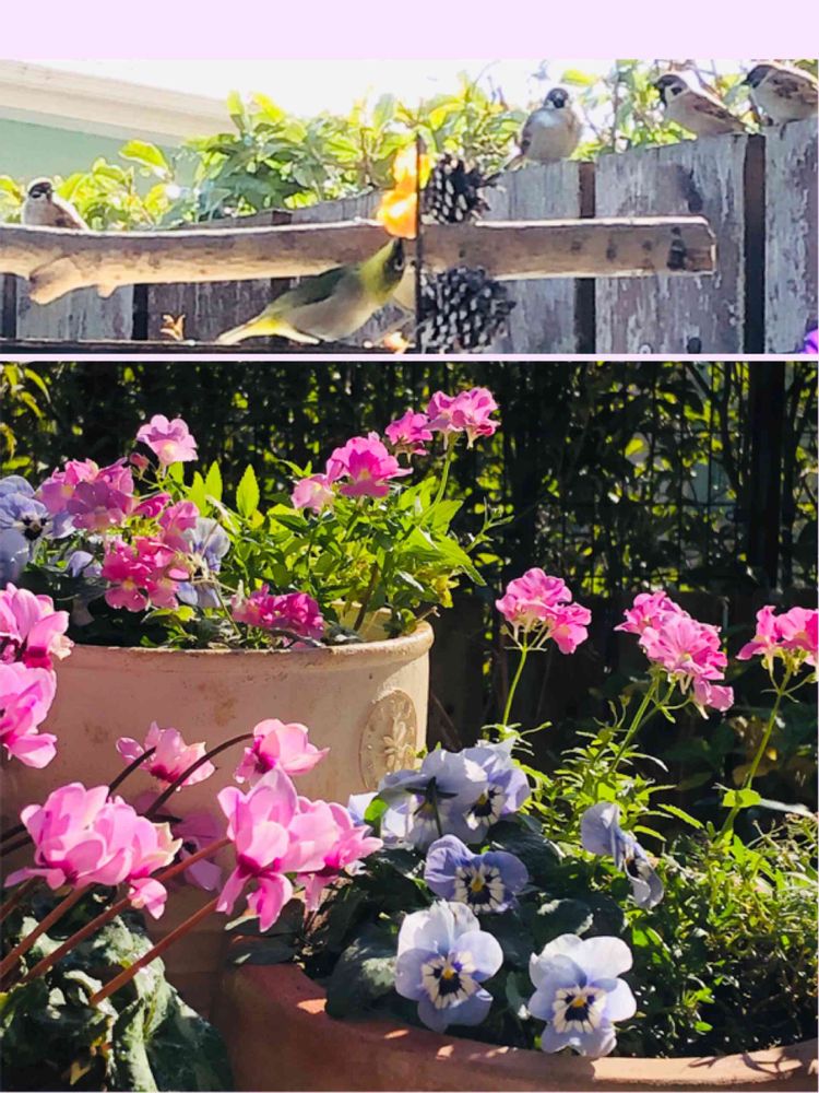 お花も🐦も日向ぼっこをして気持ち良さそうです😊