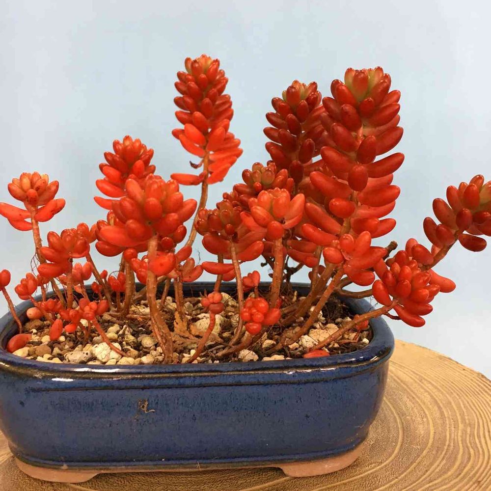 綺麗な鉢でとても豪華な盆栽仕立てです。