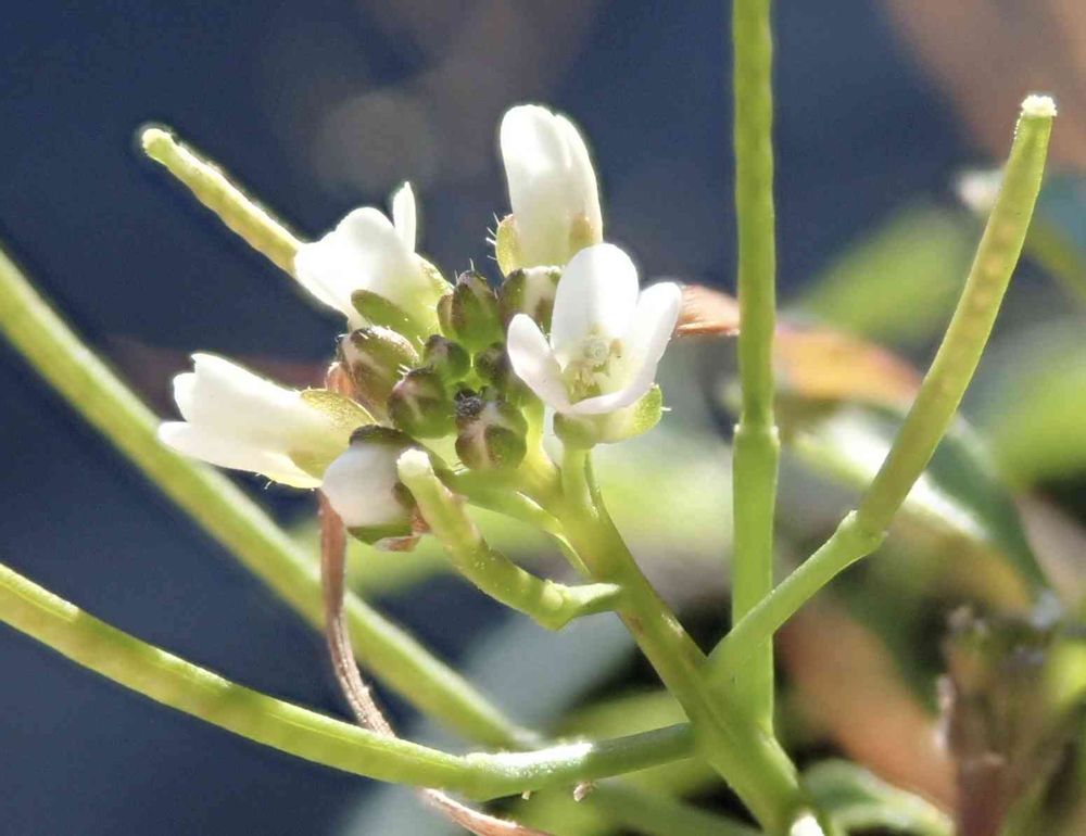 ススキの鉢に生えてきた雑草に花が咲いて果実がつきました。ミチタネツケバナでした☺️右側の果実、種子が透けて見えるのがいい感じ(・∀・)b