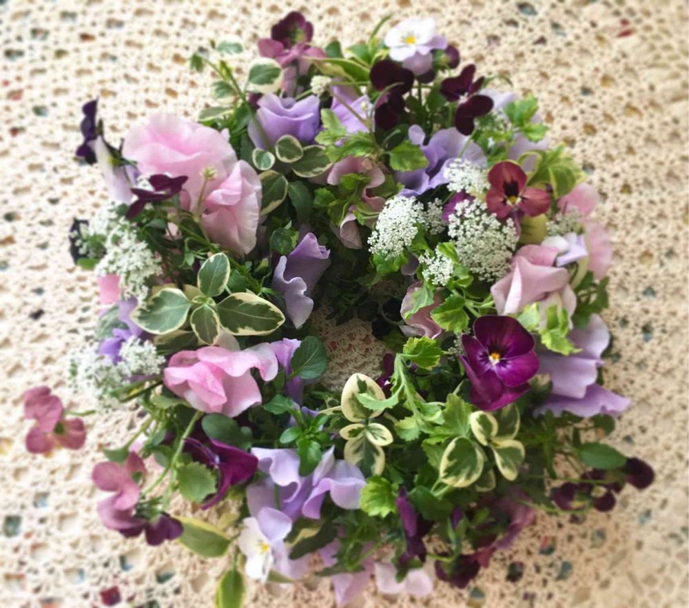 ビオラとスイートピーの色合わせがステキですね。