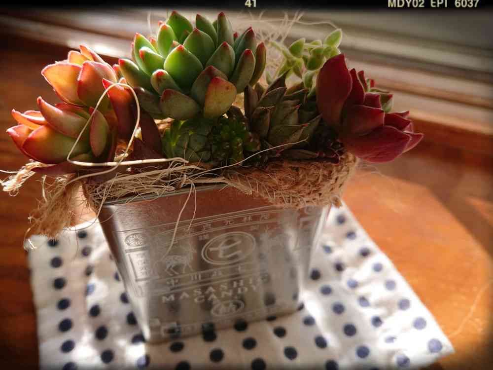 素敵なドロップ缶に可愛く寄せ植えしてるね😊