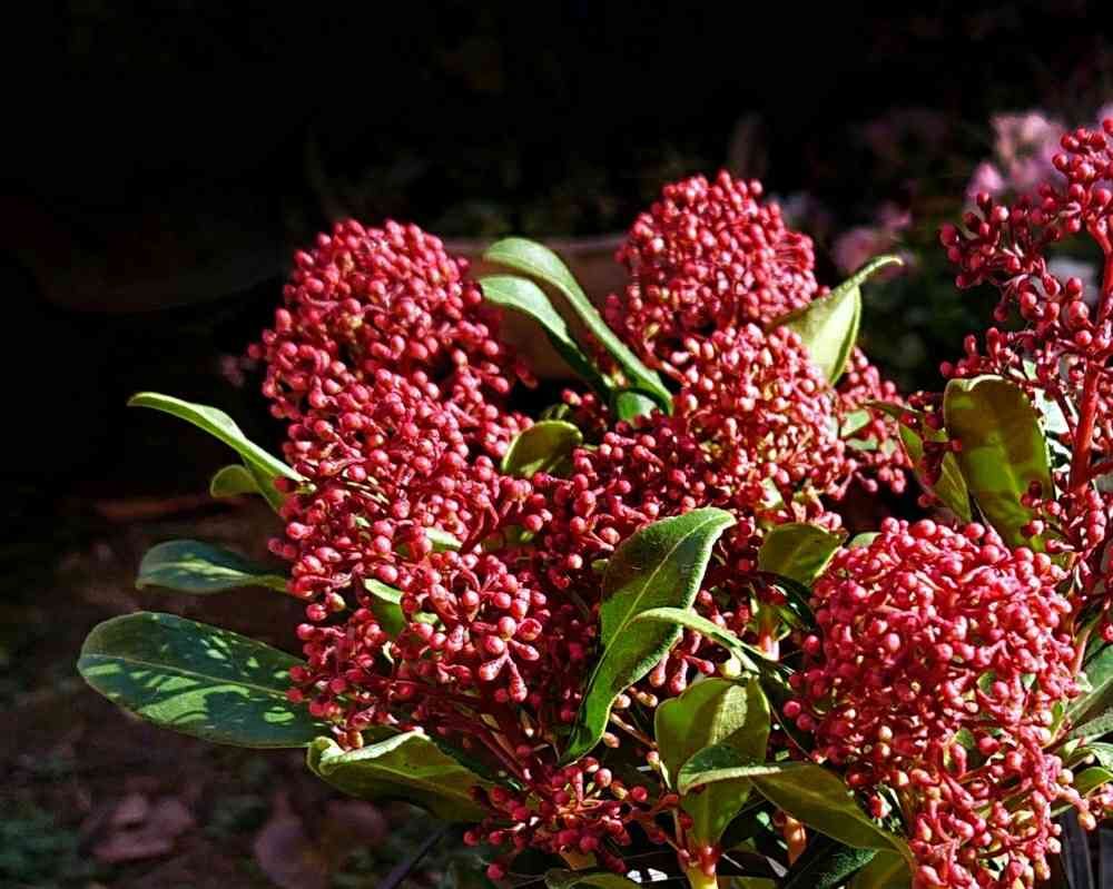 スキミアは ツボミの時期が長いから、真っ赤っかを楽しめるの( ˙灬˙ )💕
