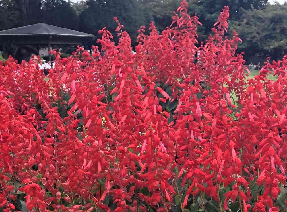 真っ赤なサルビア、燃えていますねε=ヾ(*~▽~)ノ🔥
