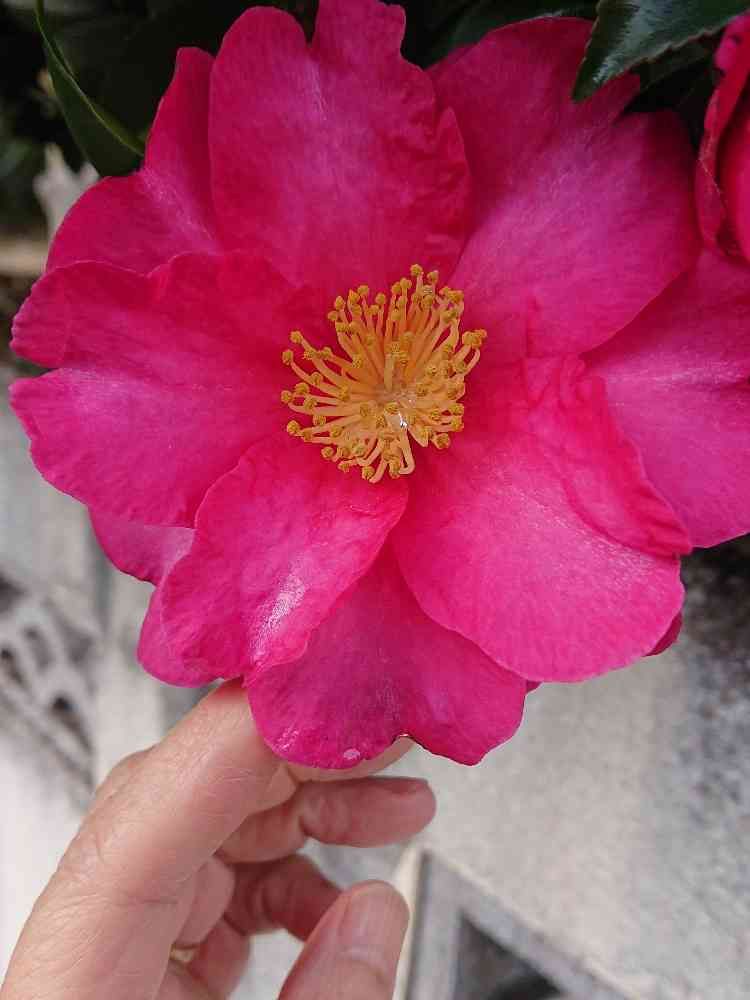 1/13……昔から椿だと聞いていたので、椿だと思ってましたが、花びらがハラハラと散ってました🌼💦