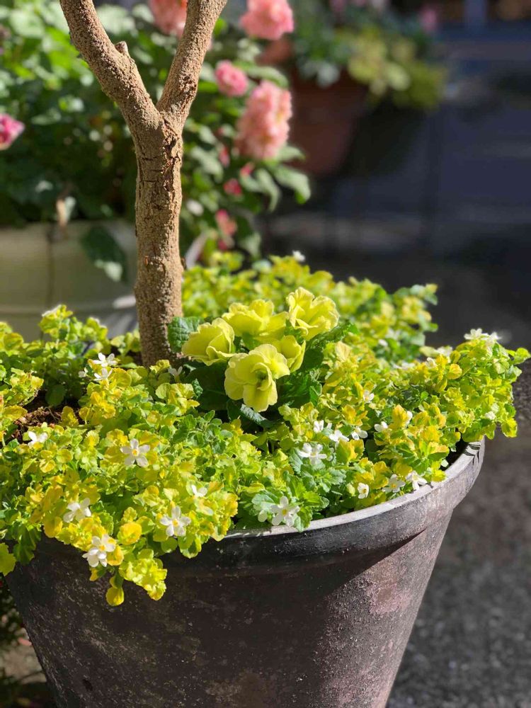 エバーフレッシュの足下が寂しいからカバーにとバコパを♪白い小花がチラチラ顔出してたまりませーん💕💓💓