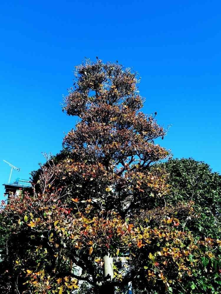 バス停🚏🚌で、近所のお庭の木を見たら、その向こうの空、雲☁️1つ無い青い空、とっても綺麗でした。