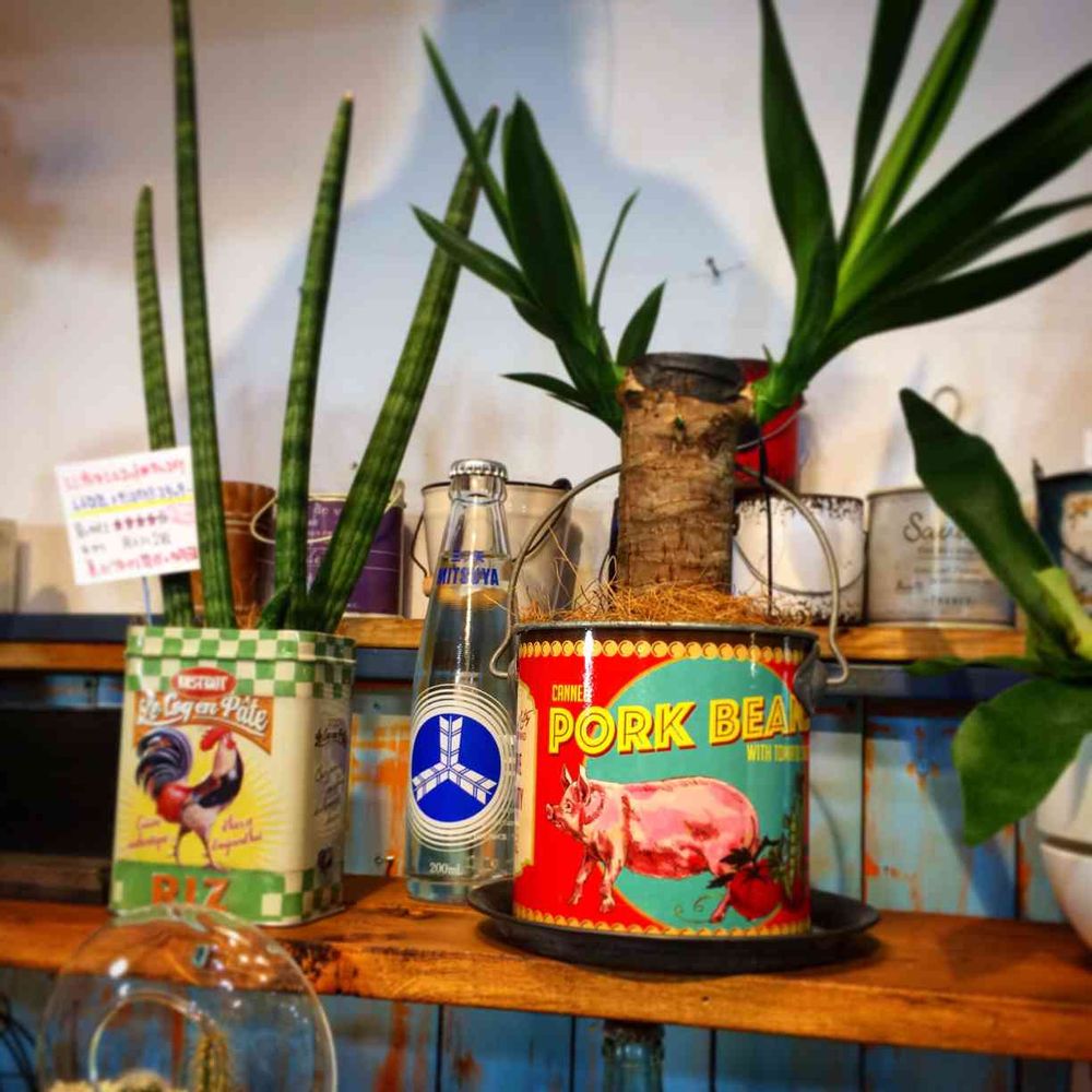 レトロなデザインがカワイイブリキ缶に植物を☆