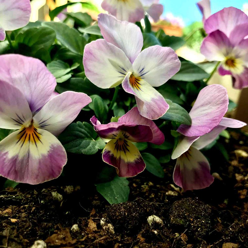 花壇の🌱よく咲くスミレ・ラベンダーソフト🌱このスミレさんは花びらがとても薄く風に吹かれ花びら1枚1枚が自由にひらひら揺れて常に動いています😊