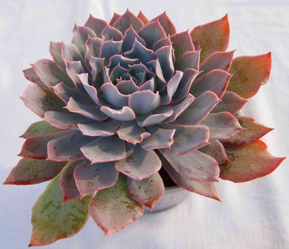 紫がかったグレーの葉に薄っすらピンクの縁取りが綺麗です。