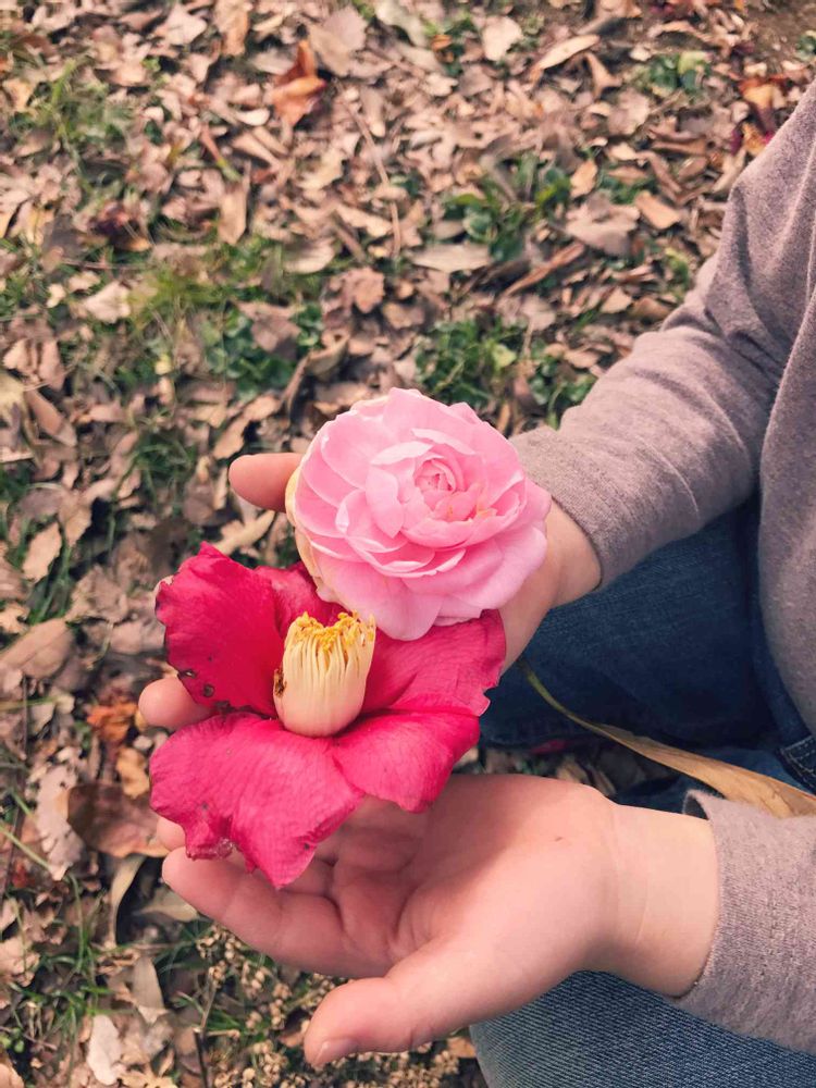 『まだキレイなのにね〜💕』っと拾い上げ、この後また椿の木にどうにか戻そうとしてました☺️