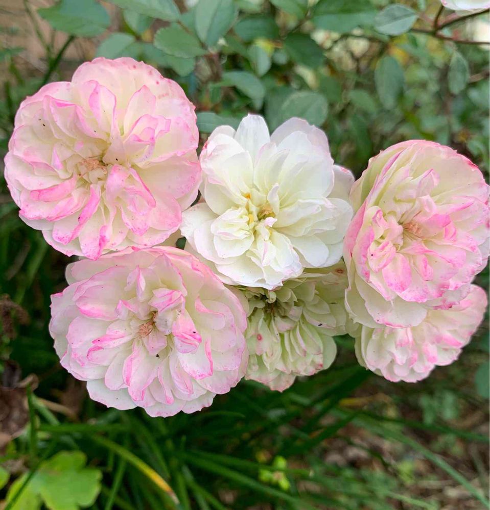 今までは何年も白いままでしたが今年はピンク色に縁取られた花が咲いていました。可愛いですよね💕薔薇の事もよくわかってないのですが、こんな寒くても元気に咲く薔薇もあるんですね❣️