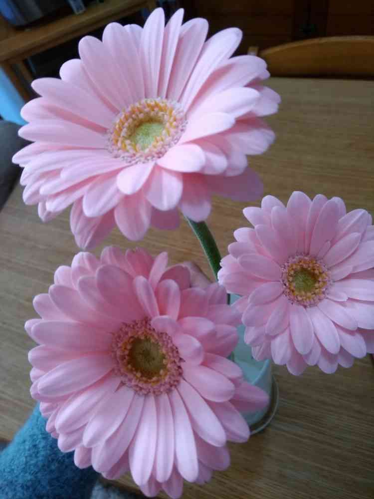 ガーベラ🌼で、こんな優しい色💗初めて観ました~