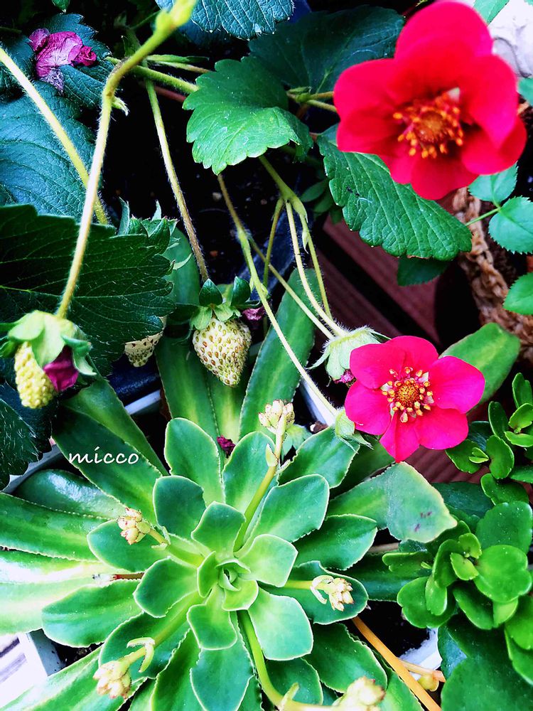❥︎・•miccoさんのローズベリーレッド,いちごのお花,サントリー本気野菜の投稿画像