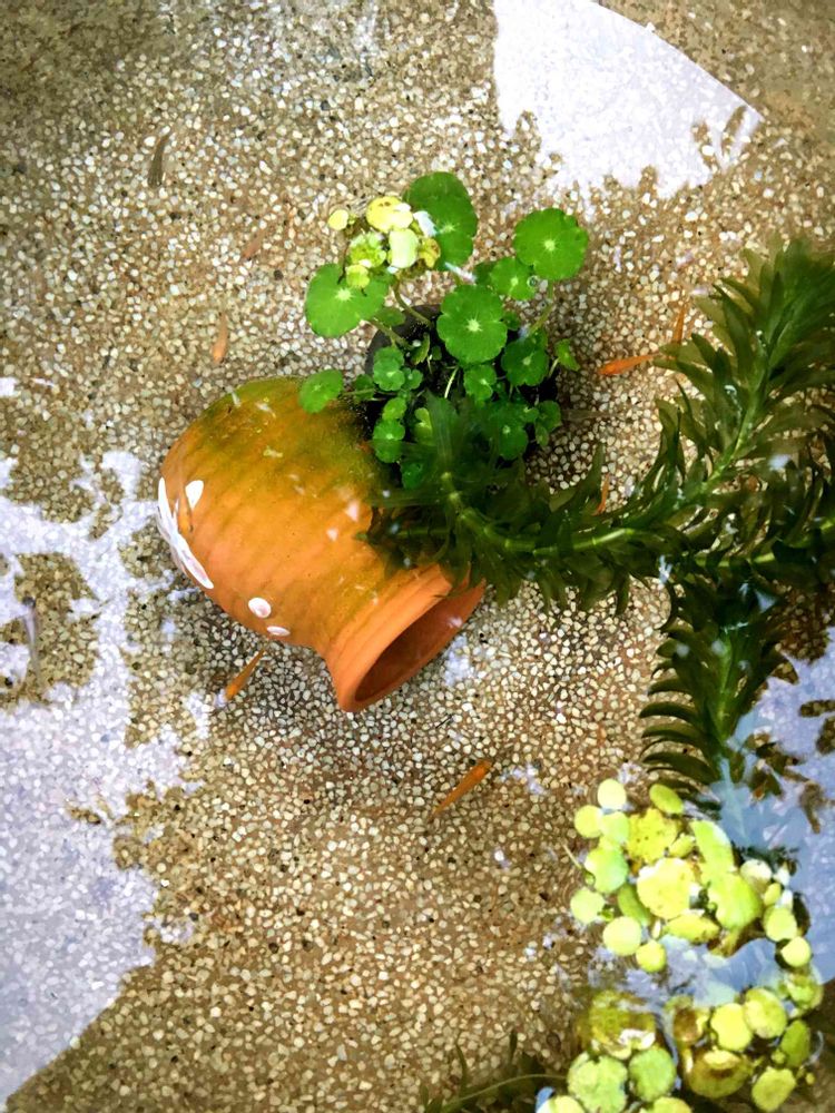 石臼をなんとか再利用したくて水草育てようと思ったらボーフラが心配になってメダカ入れることにしました(*゚∀゚*)