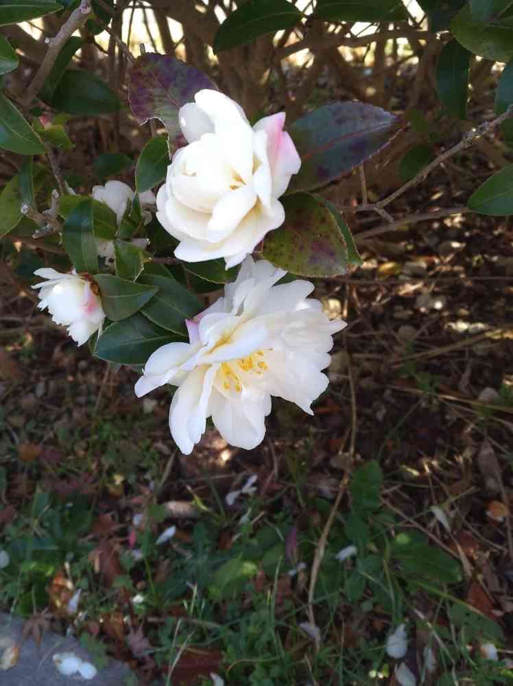 白のサザンカ ほんのりピンクがかわいいですね💕