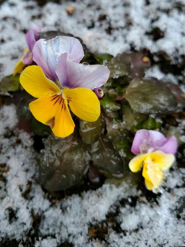 雪の中でも咲くビオラにただキレイだけではない生命力の強さを感じます。