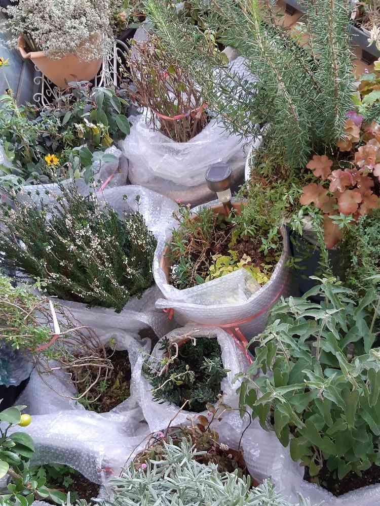 さん、私もビニールの袋を掛けています。水やりが大変。外したり掛けたりです。春まで頑張ります。( ^ω^ )
