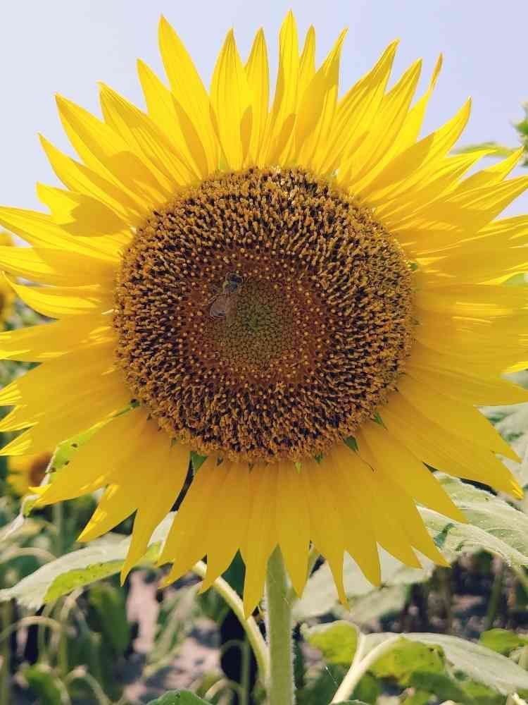 よ~く見るとひまわりにミツバチがとまってるんですがわかりますか❓😊