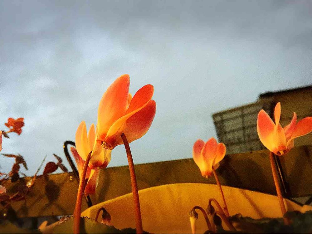 ありがとさん。夕暮れ時で不思議なシクラメン💕