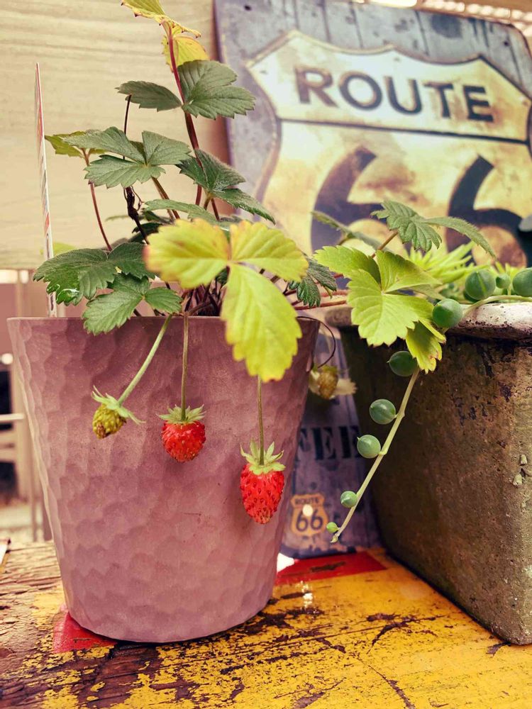 ワイルドストロベリーの実が赤くなってきました♪