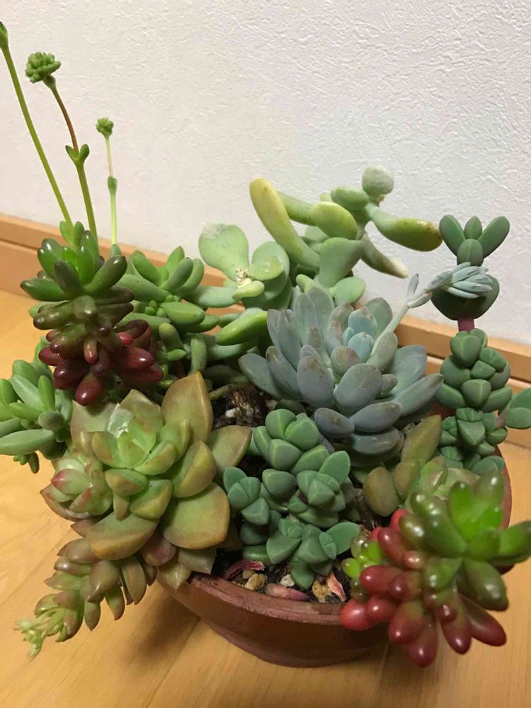 花が咲いた多肉ちゃんも可愛くてみたい気持ちはあるのですが、私は咲く前に切って、小さな瓶に入れて楽しんでいます♡