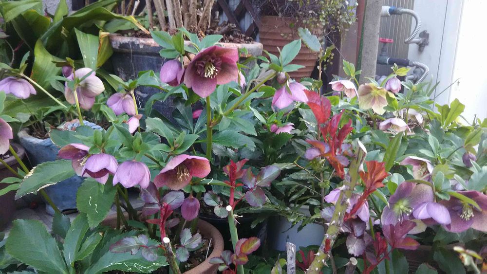玄関先が花盛りクリスマスローズほぼ全株開花