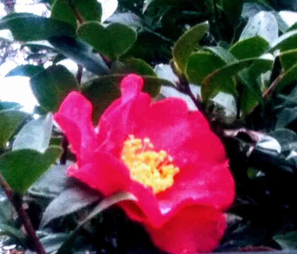 散策の途中、通り道にあるお宅の垣根の椿です。