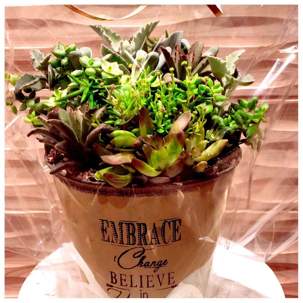 で、今日は、夜勤明け、今の職場で、最後の仕事を終え、、ふだん退職する人には花束なですが、私が多肉が好き💕