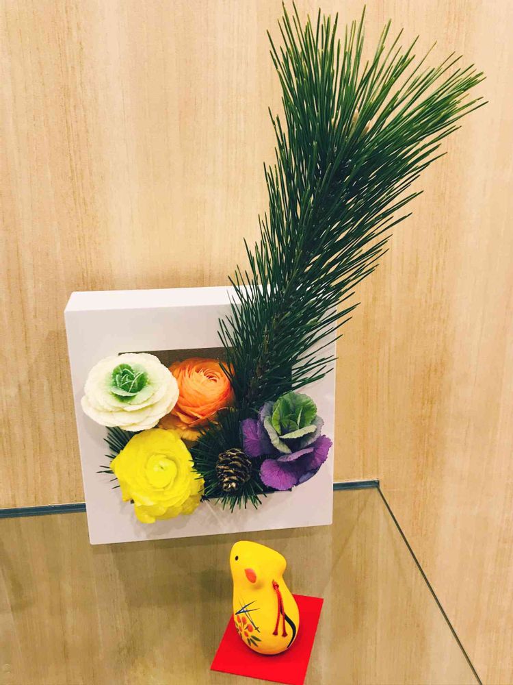 お正月花で使ったミニ葉牡丹が水揚げで復活したので使ってみました。