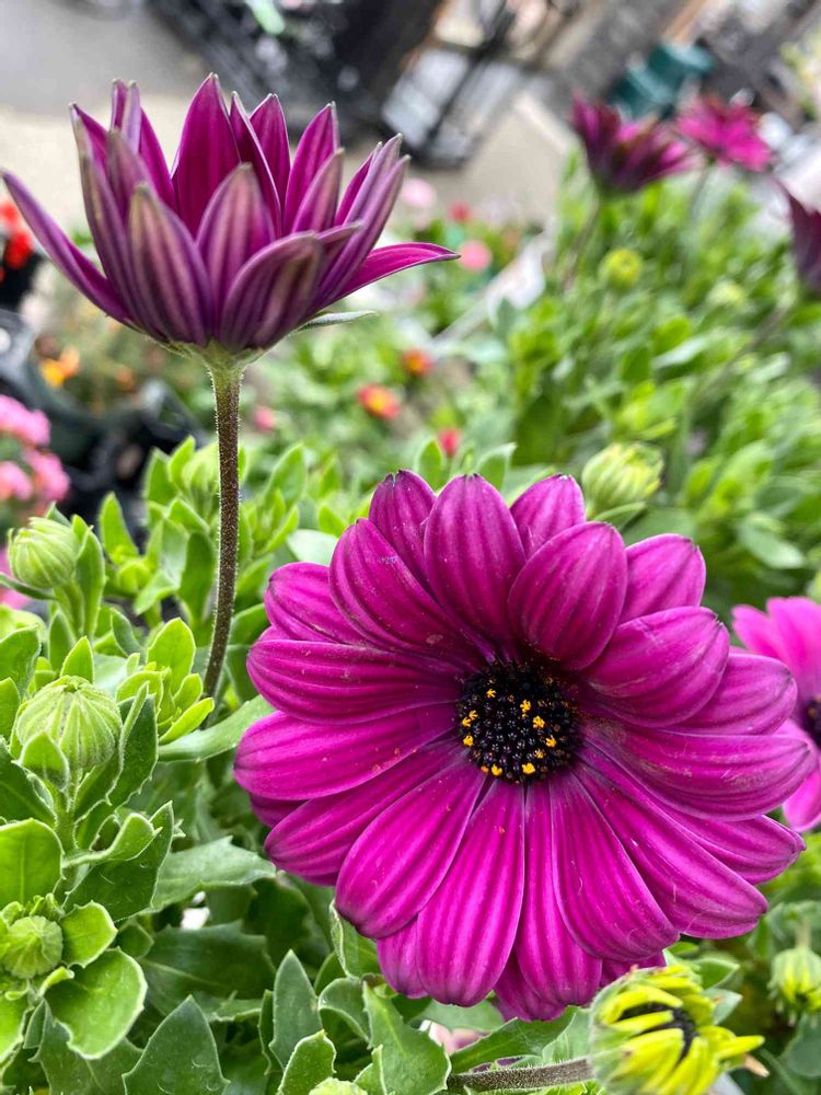 今日、自分の店で「オステオスペルマム」買ってきました!オレンジと青紫の複合色です。オステならではの色✨