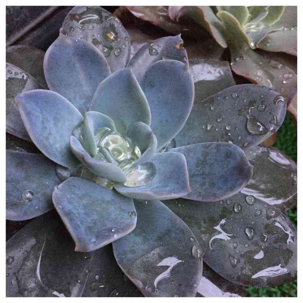 夕方、雨が止んでベランダへ。気温低め?どの多肉を部屋に取り込むか、悩む。とりあえず、ブロワーで雨水をはらう…。