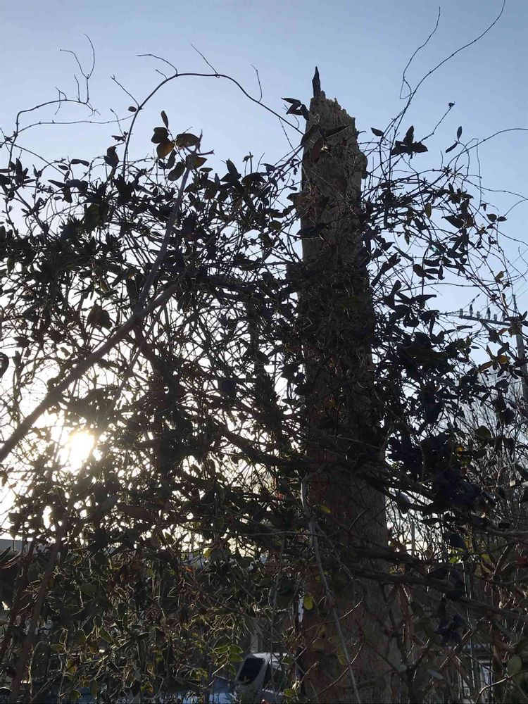 マロニエはとうの昔にハニーサックルに締め上げられて枯れましたが、暴風でハニーサックルが外れてしまったので結構切りました😰