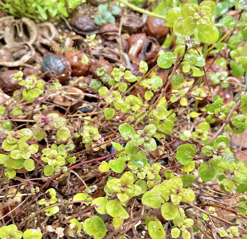 紅葉したらしき株の下から緑の芽🌱が出てきています😉💚