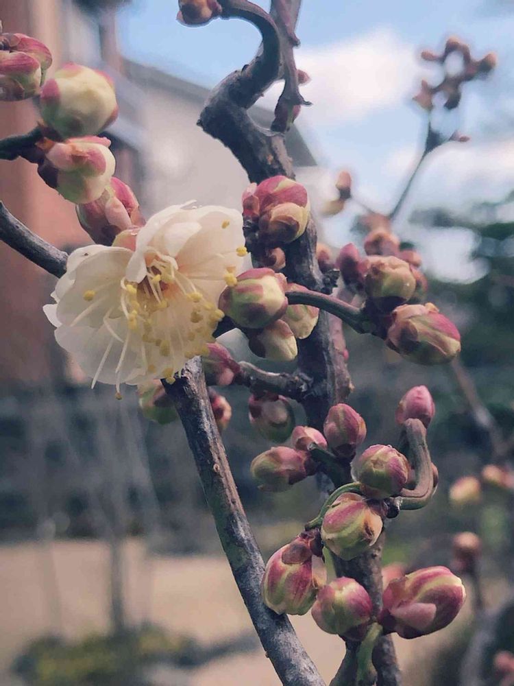 庭の雲竜梅の花が一輪咲きました❣️