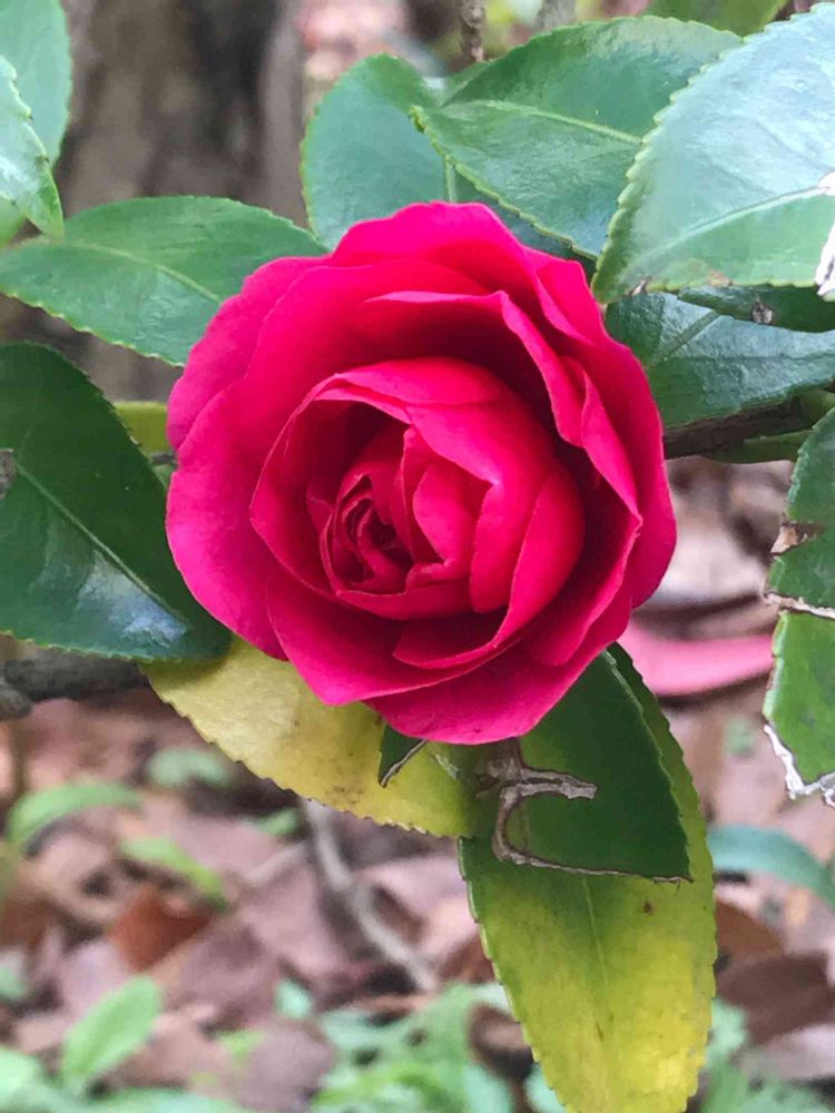 お隣さんのサザンカは全部咲いて、散ってしまいました。 綺麗に永く咲いてますね🤗