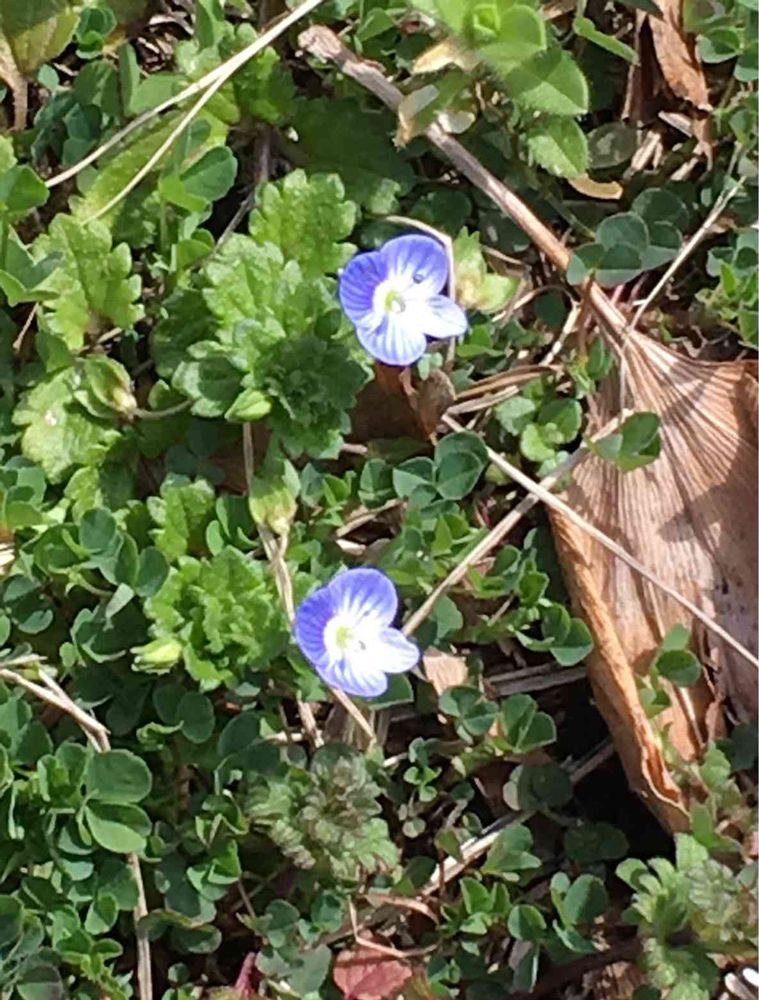 オオイヌノフグリ。ウィキペディアで調べたら、星の瞳という別名の他に、瑠璃唐草や天人唐草といった呼び名もあるそう。