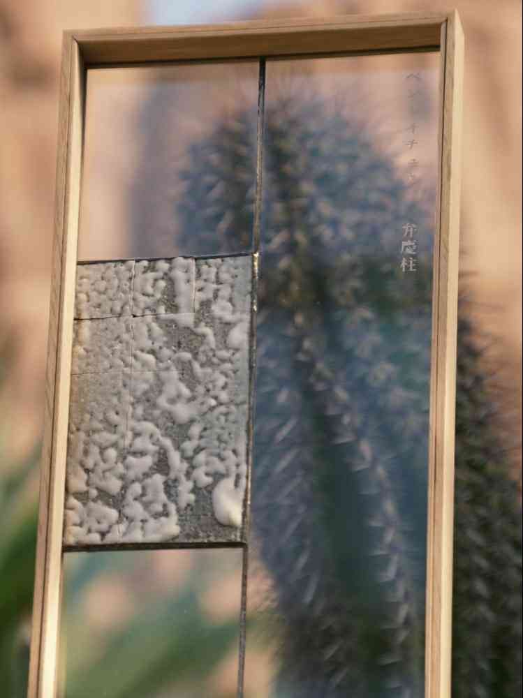 植物の前にタイルが一枚ありますが、植物を灰にして混ぜた釉薬で作ってあります。