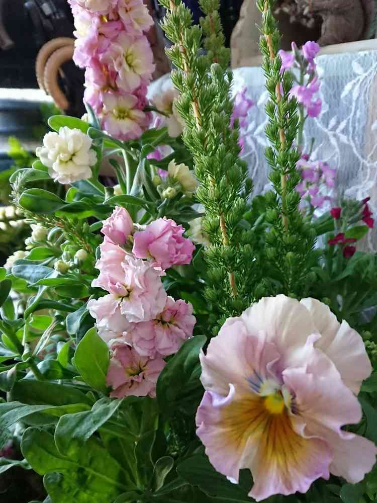 ストックのお花大好き💕優しいピンク色が素敵ですね🌸💕毎年、玄関先にストック寄せ植えを置いています。なんとも言えない良い香りがしています。寄せ植え2鉢と花壇にも植えてあります。好みが一緒で嬉しいです😃