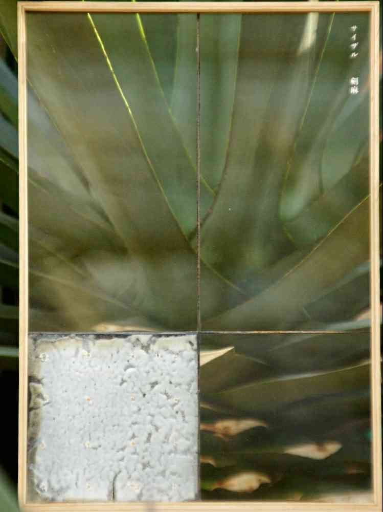 植物の前にタイルが一枚ありますが、植物を灰にして混ぜた釉薬で作ってあります。