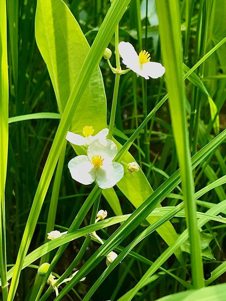 クワイをどうも描きそうな予感、そのとなりに、オモダカの緑の葉と清楚なオモダカの花を描かれるのかなあ⁉️