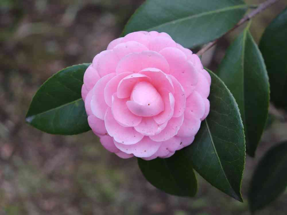 椿ですが種類が不明。ポロッと落ちることなく、花びらが散ることもない。茶色に変色しても頑張ります。