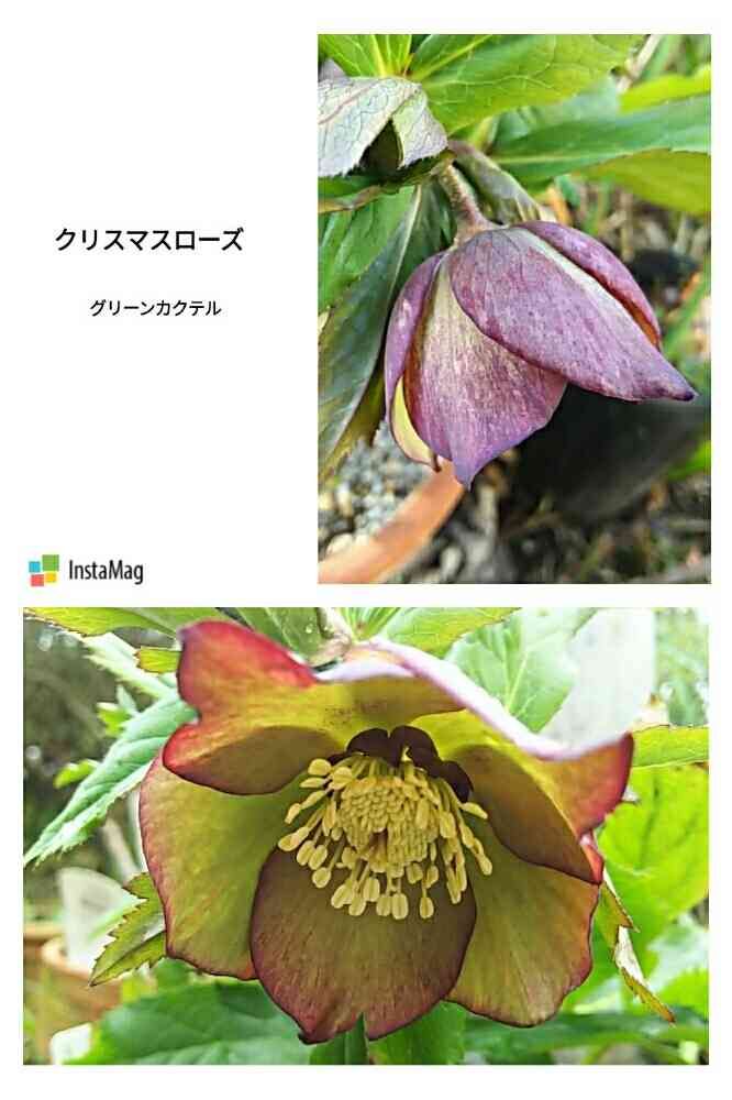 うつ向いて咲く姿は赤っぽいけど中を見るとグリーンも入ってるね‼