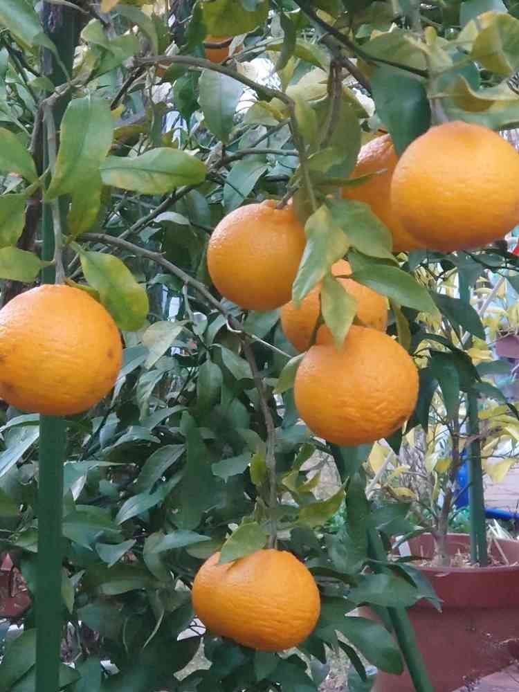 庭の小さな木にオレンジ色の果実が沢山(30個)